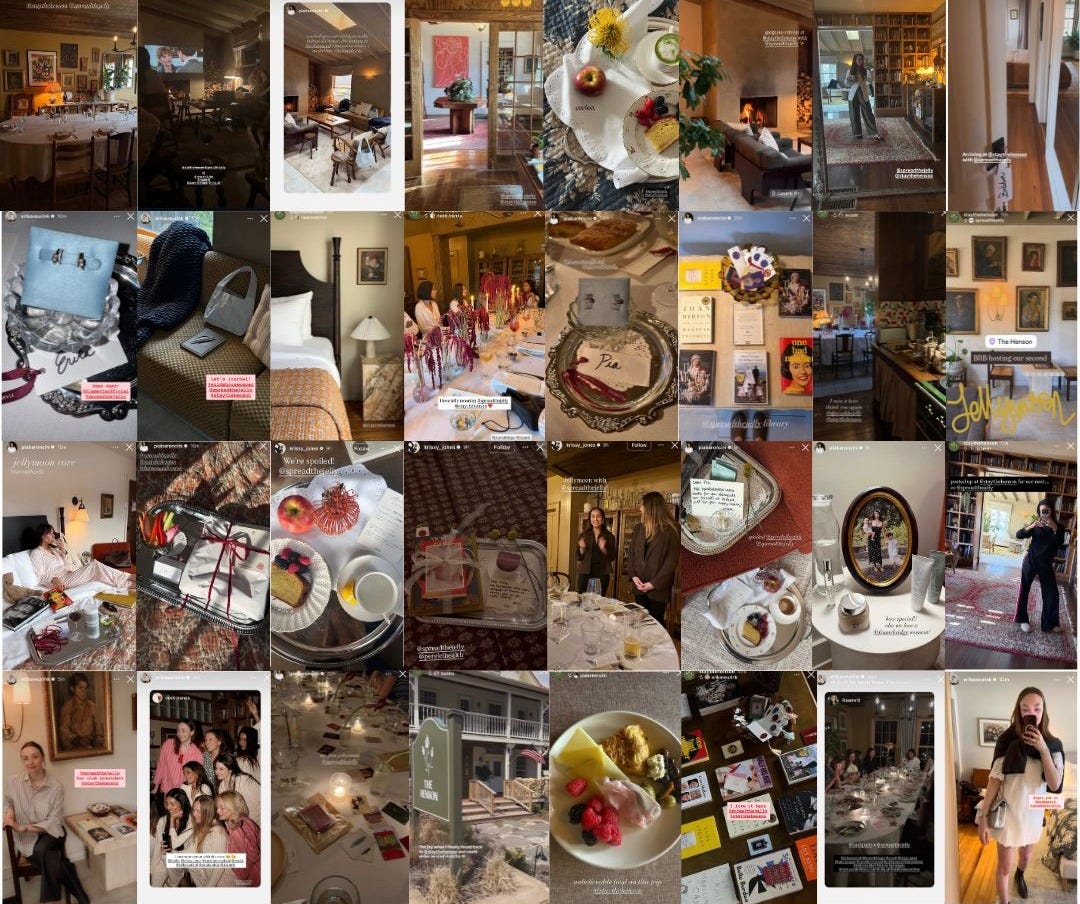 Spread the Jelly hosted a ‘Jellymoon’ upstate, bringing together a group of moms for a multi-day getaway with multiple brands thoughtfully integrated across the experience. It was a really strong example of how partnerships can feel additive with ba&sh dressing everyone for a group dinner, Perelel Health providing supplements, a spa day with Coterie, a pajama night with Hanna Andersson, and a journaling workshop led by Erika Veurink in partnership with Wilde House Paper.