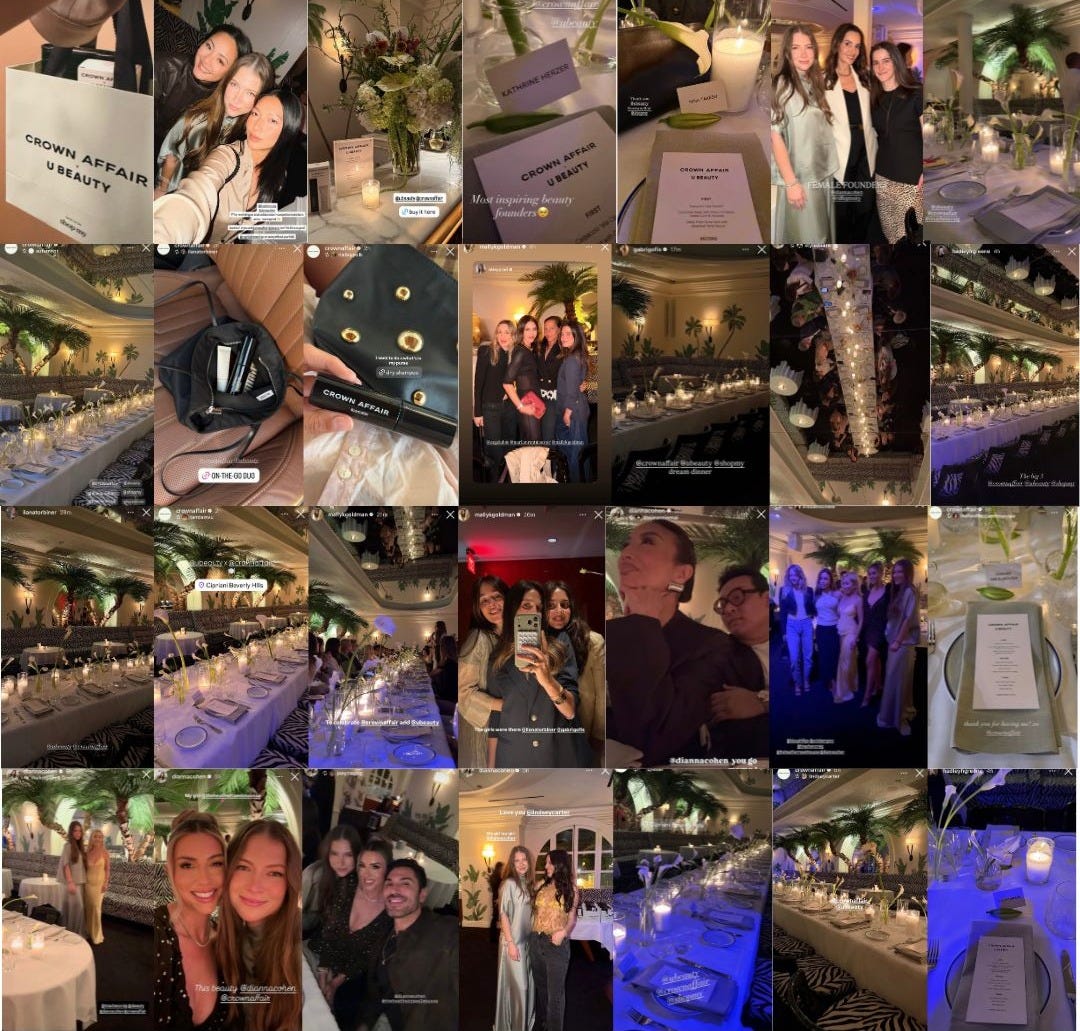 Crown Affair x U Beauty hosted a dinner in LA to celebrate their limited-edition, on-the-go collaboration. The event was sponsored by ShopMy, which continues to show up more IRL as a connector across brands and creators.
